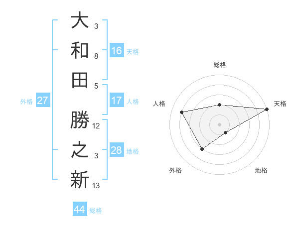 大和田 勝之新さんを姓名の画数から五運を鑑定