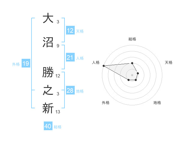 大沼 勝之新さんを姓名の画数から五運を鑑定