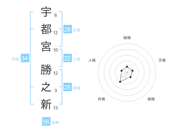 宇都宮 勝之新さんを姓名の画数から五運を鑑定