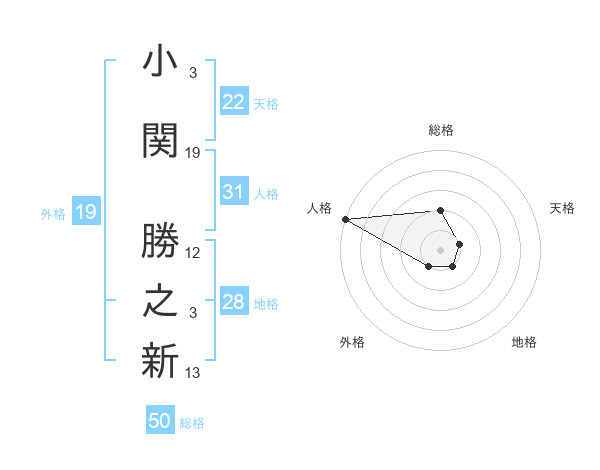 小関 勝之新さんの総格は50画の2点!