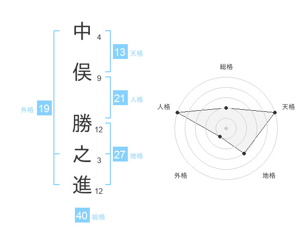 中俣 勝之進さんを姓名の画数から五運を鑑定