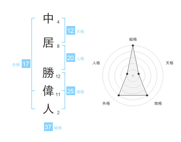 中居 勝偉人さんを姓名の画数から五運を鑑定