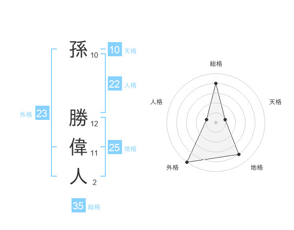 孫 勝偉人さんを姓名の画数から五運を鑑定