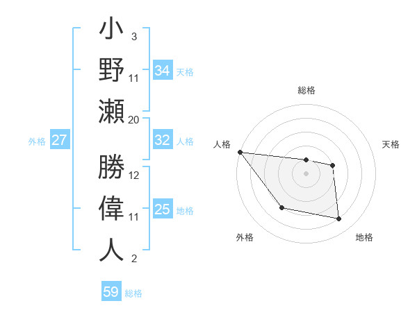 小野瀬 勝偉人さんの地格は25画の4点!