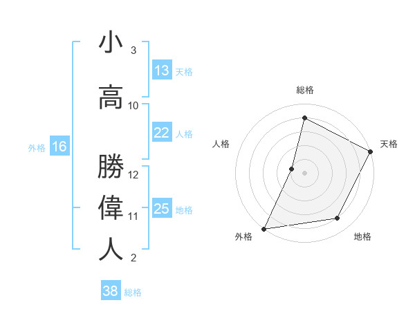 小高 勝偉人さんを姓名の画数から五運を鑑定