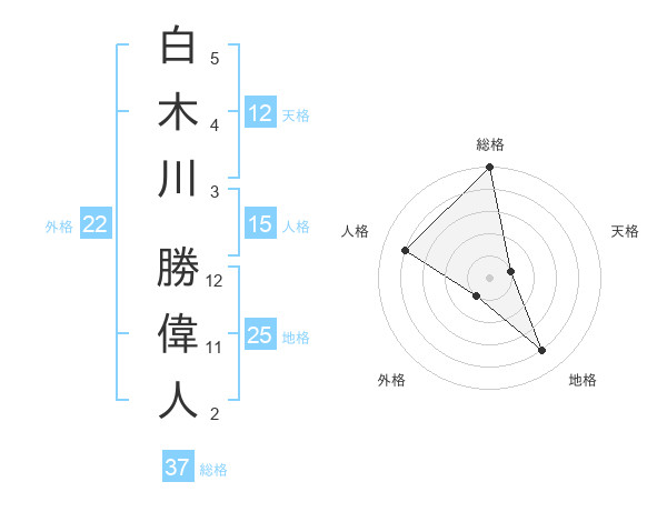 白木川 勝偉人さんを姓名の画数から五運を鑑定