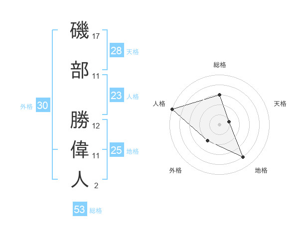 磯部 勝偉人さんを姓名の画数から五運を鑑定