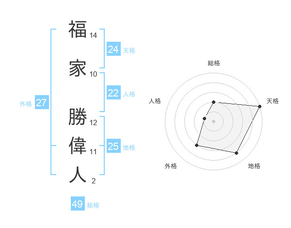 福家 勝偉人さんを姓名の画数から五運を鑑定