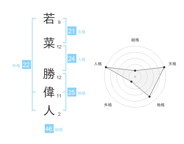 若菜 勝偉人さんの地格は25画の4点!