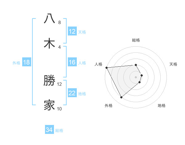 八木 勝家さんの総格は34画の2点!
