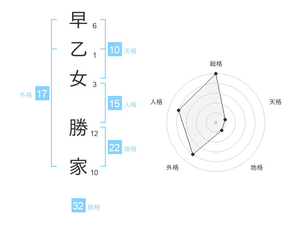 早乙女 勝家さんを姓名の画数から五運を鑑定
