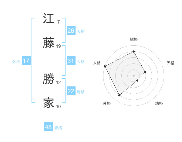 江藤 勝家さんを姓名の画数から五運を鑑定