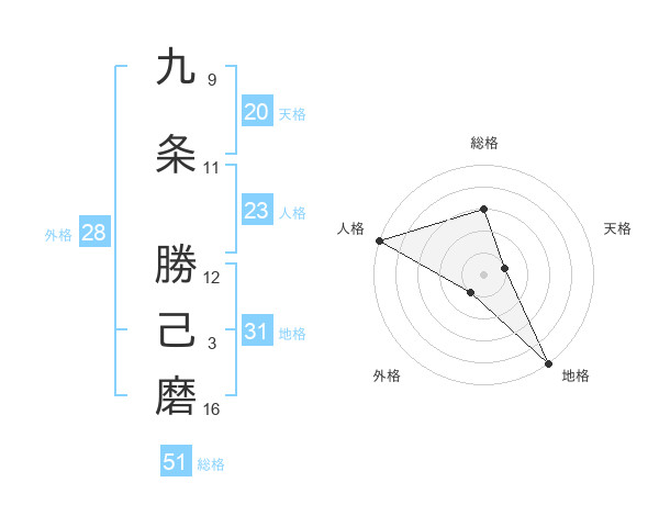 九条 勝己磨さんを姓名の画数から五運を鑑定