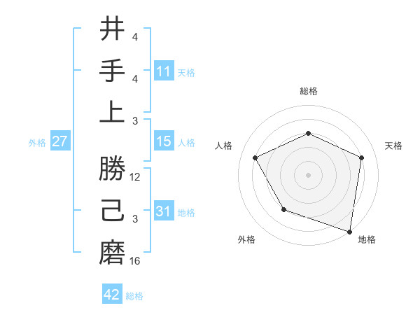 井手上 勝己磨さんの総格は42画の3点!