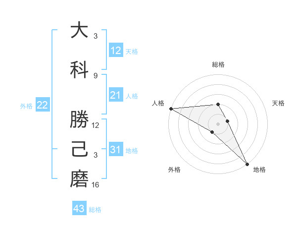 大科 勝己磨さんを姓名の画数から五運を鑑定