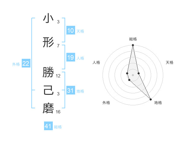 小形 勝己磨さんを姓名の画数から五運を鑑定