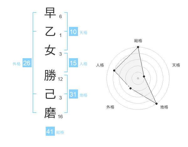 早乙女 勝己磨さんを姓名の画数から五運を鑑定