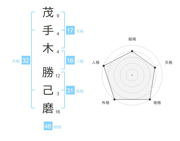 茂手木 勝己磨さんの地格は31画の5点!