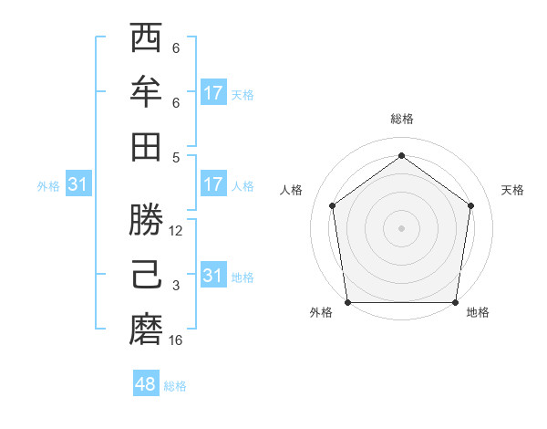 西牟田 勝己磨さんを姓名の画数から五運を鑑定