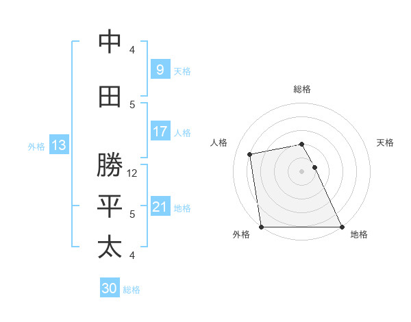 中田 勝平太さんを姓名の画数から五運を鑑定
