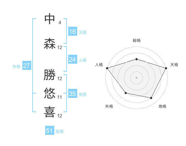中森 勝悠喜さんの総格は51画の3点!