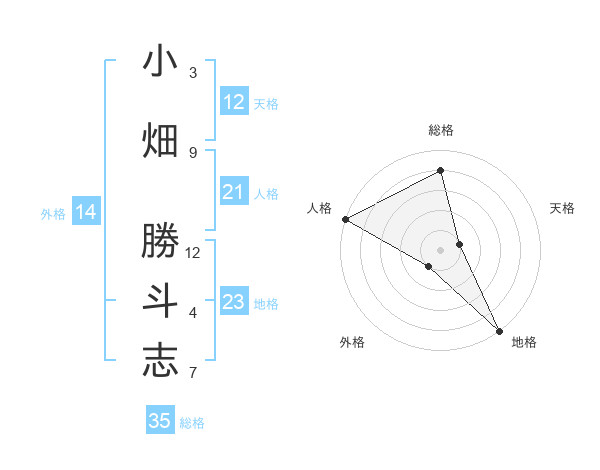 小畑 勝斗志さんを姓名の画数から五運を鑑定