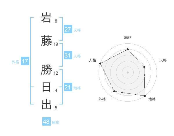 岩藤 勝日出さんの総格は48画の4点!