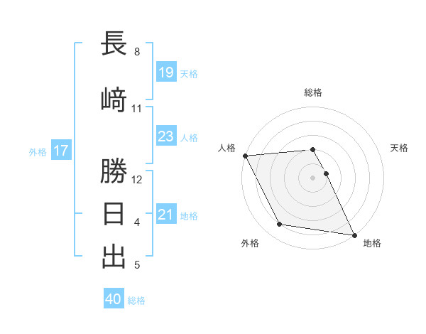 長﨑 勝日出さんの地格は21画の5点!