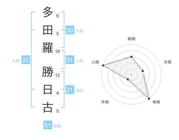 多田羅 勝日古さんを姓名の画数から五運を鑑定