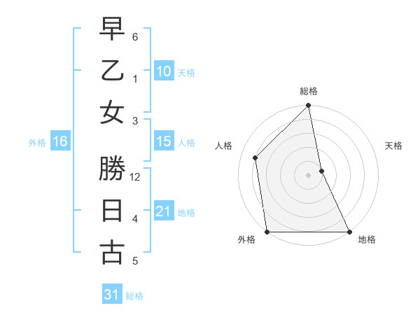 早乙女 勝日古さんの総格は31画の5点!
