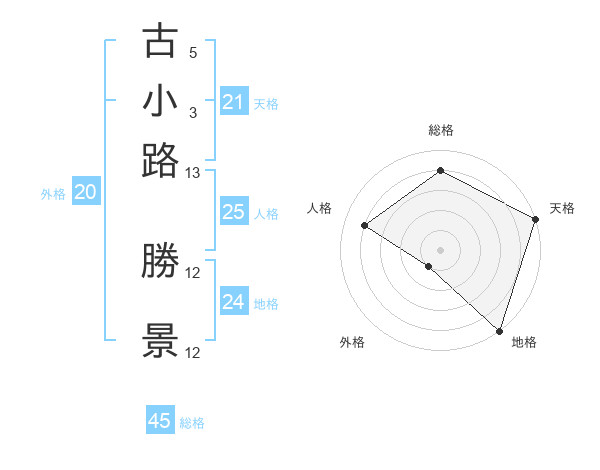 古小路 勝景さんを姓名の画数から五運を鑑定