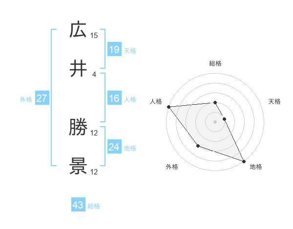 広井 勝景さんの総格は43画の2点!