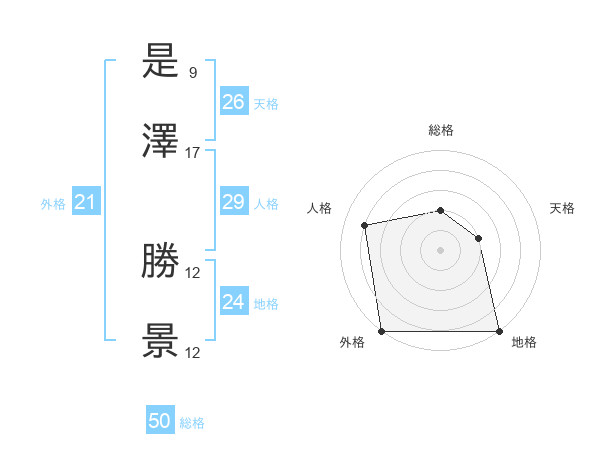是澤 勝景さんを姓名の画数から五運を鑑定