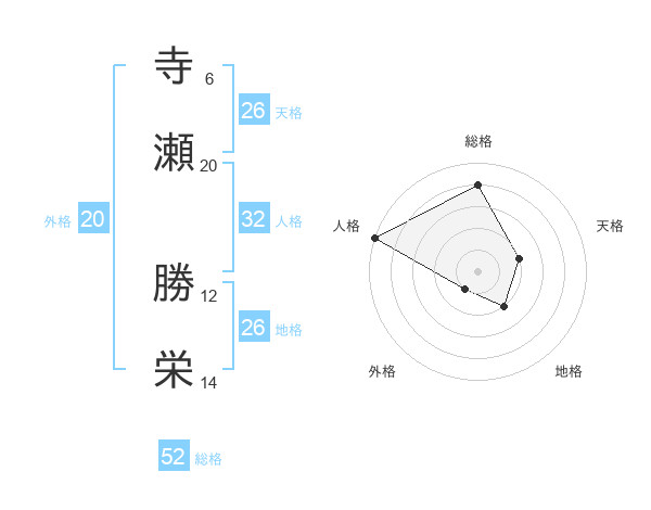 寺瀬 勝栄さんの総格は52画の4点!
