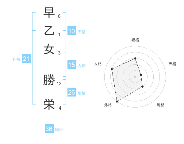 早乙女 勝栄さんの地格は26画の2点!