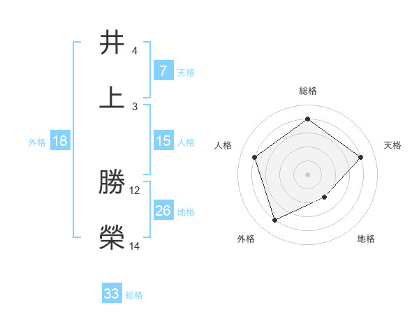 井上 勝榮さんを姓名の画数から五運を鑑定