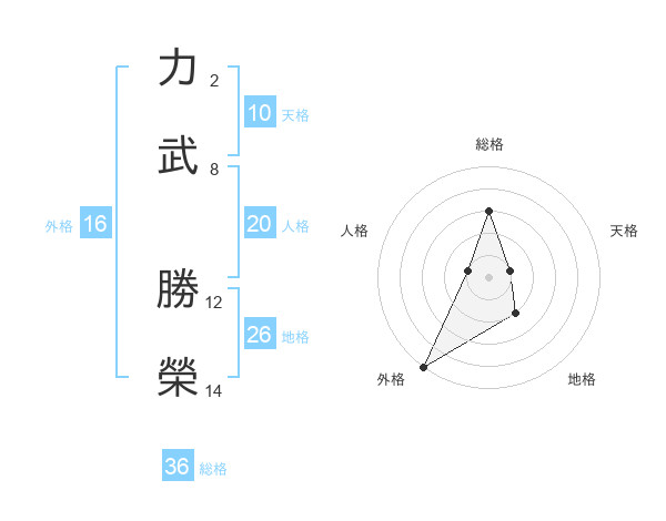 力武 勝榮さんの総格は36画の3点!