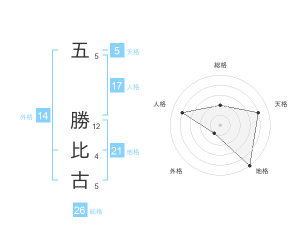 五 勝比古さんの地格は21画の5点!