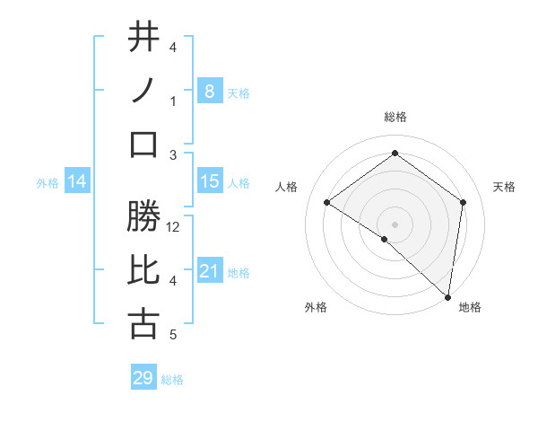 井ノ口 勝比古さんを姓名の画数から五運を鑑定