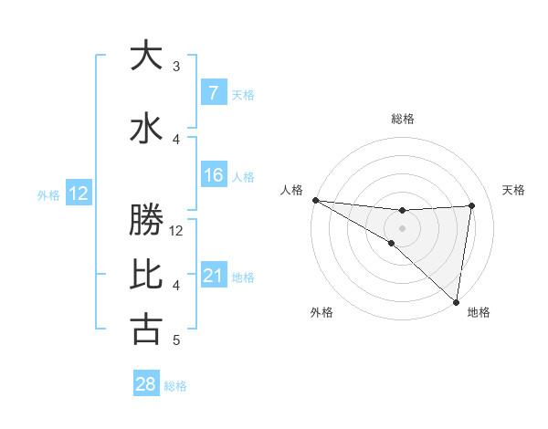 大水 勝比古さんを姓名の画数から五運を鑑定