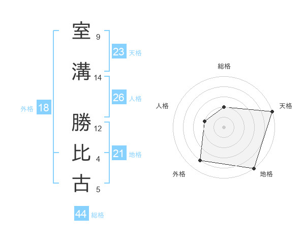 室溝 勝比古さんを姓名の画数から五運を鑑定