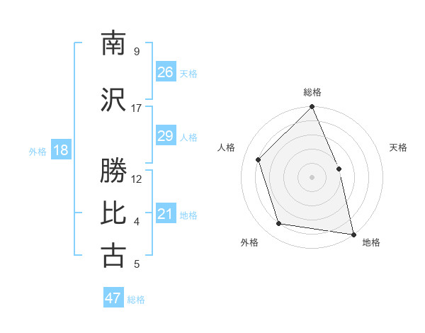 南沢 勝比古さんの総格は47画の5点!