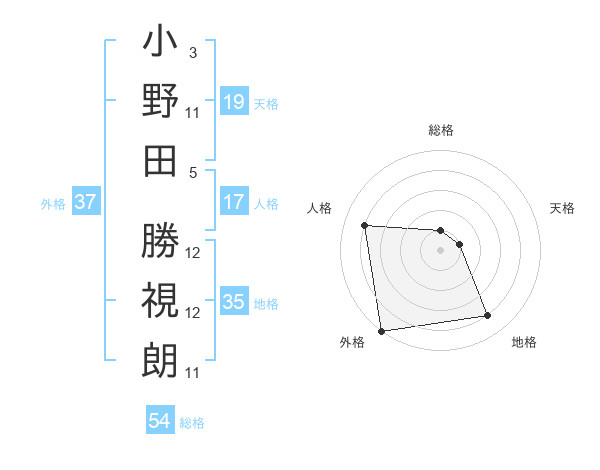 小野田 勝視朗さんを姓名の画数から五運を鑑定