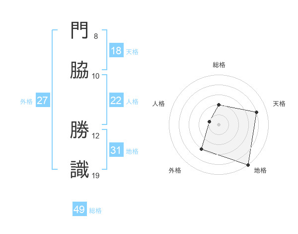 門脇 勝識さんを姓名の画数から五運を鑑定