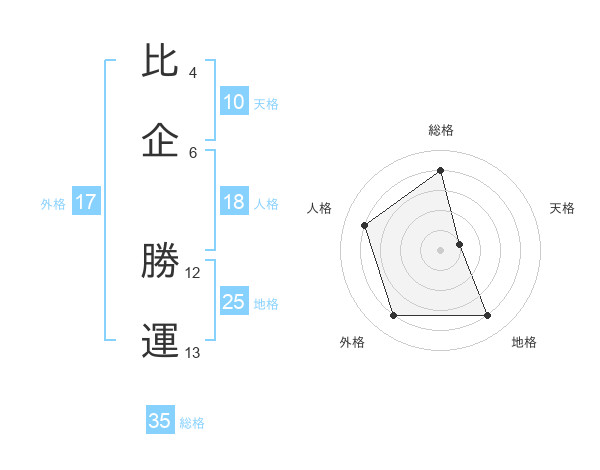 比企 勝運さんの総格は35画の4点!