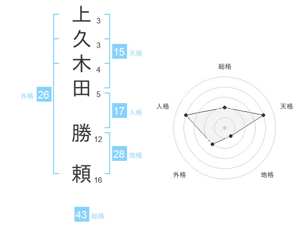 上久木田 勝頼さんを姓名の画数から五運を鑑定