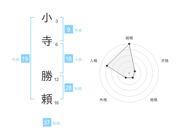 小寺 勝頼さんを姓名の画数から五運を鑑定