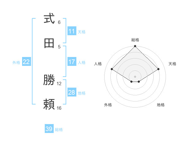 式田 勝頼さんを姓名の画数から五運を鑑定