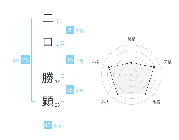 二口 勝顕さんを姓名の画数から五運を鑑定
