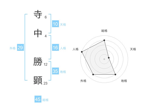 寺中 勝顕さんの総格は45画の4点!